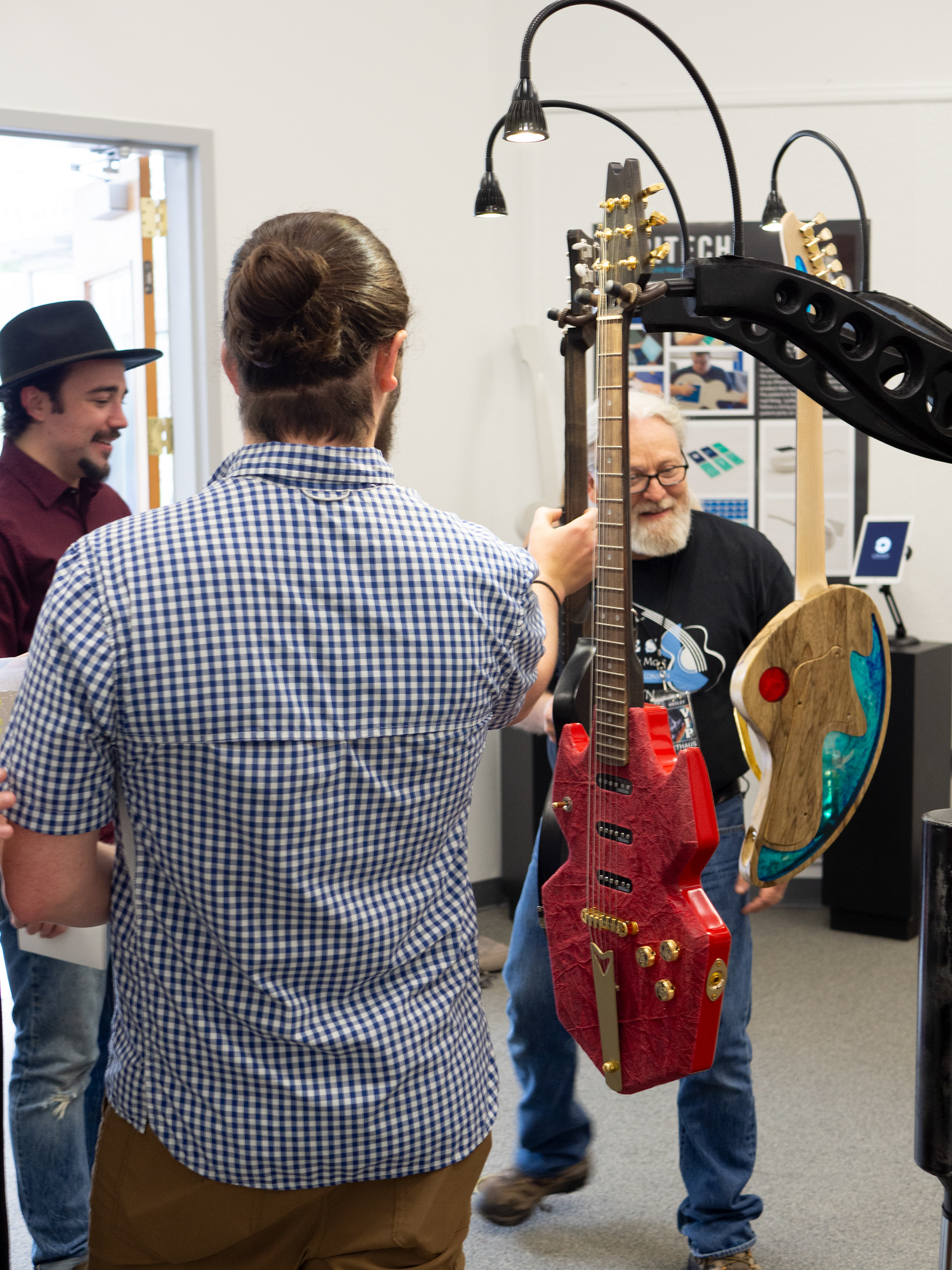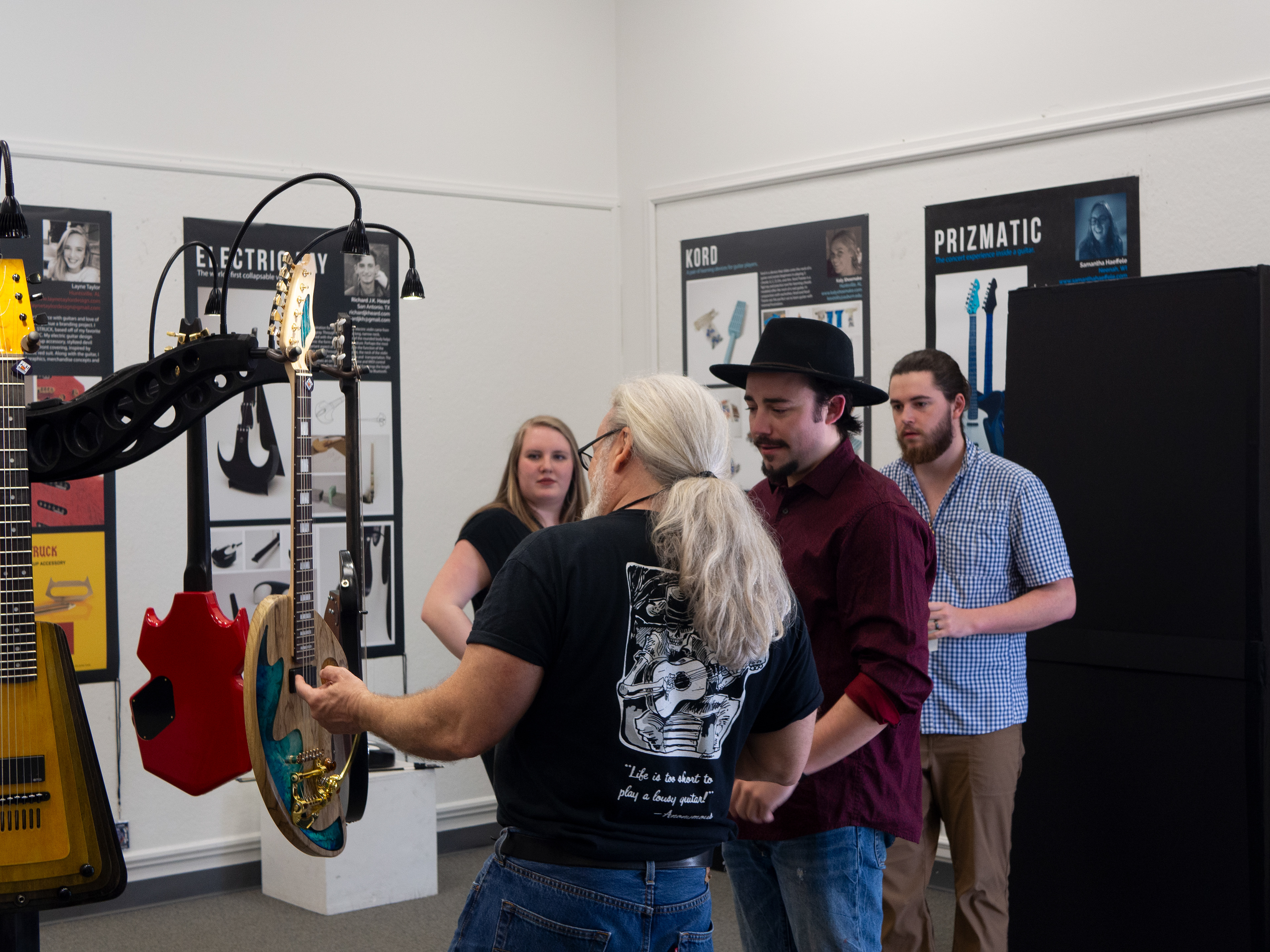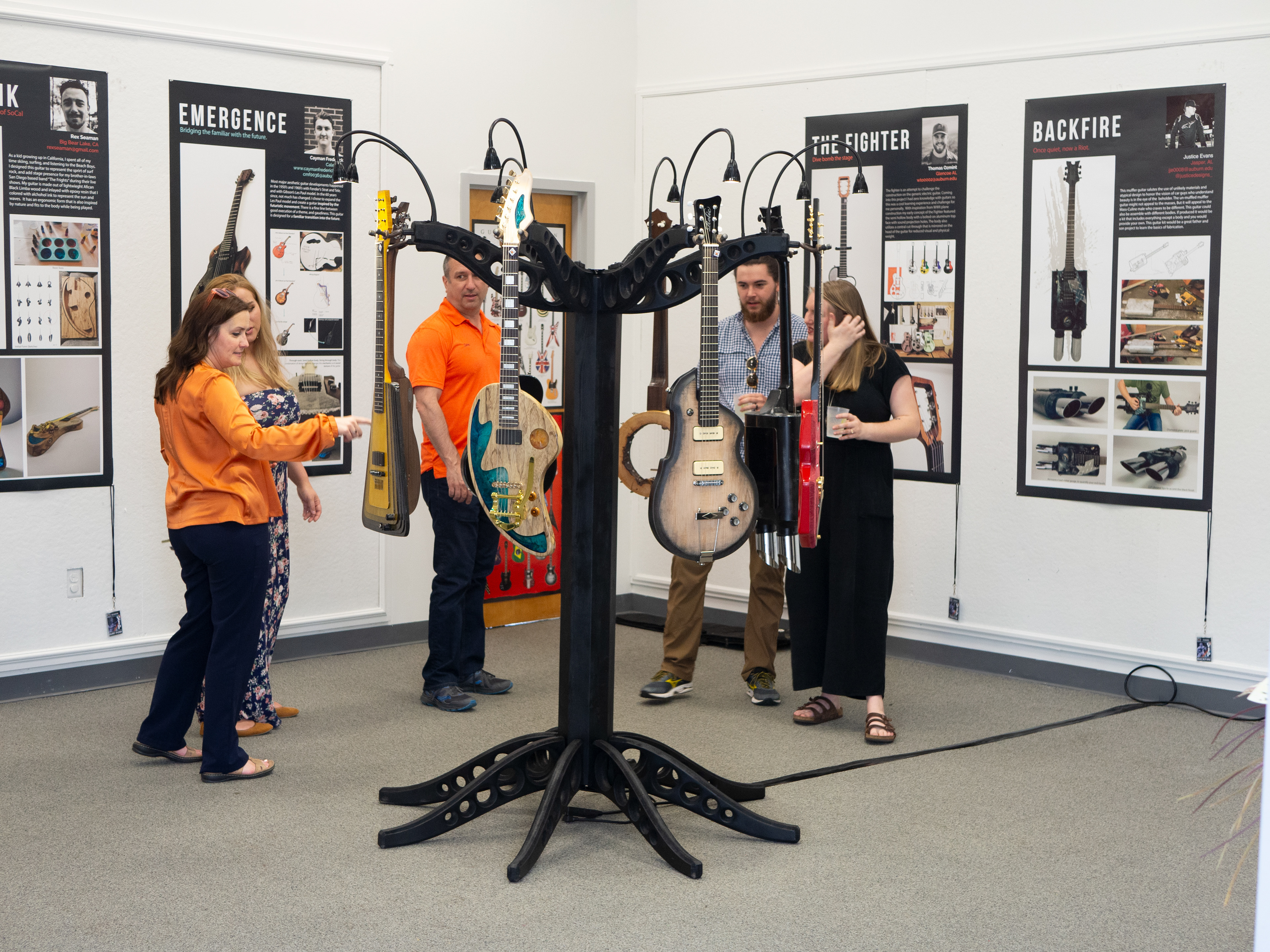This was the inaugural FretHaus event that started it all. There was more latitude on the scope of the project the first year, which allowed some guitar related peripherals to be designed. There was a total of nine guitars produced, one banjo, one violin, two learning aids and one guitar case. These guys coined the term FretHaus and set the bar for those who will follow them. In the following years, FretHaus would become electric, solid body guitars only that had to function as part of the assignment. Thanks to the Jan Dempsey Community Art Center for hosting the first FretHaus ever!
